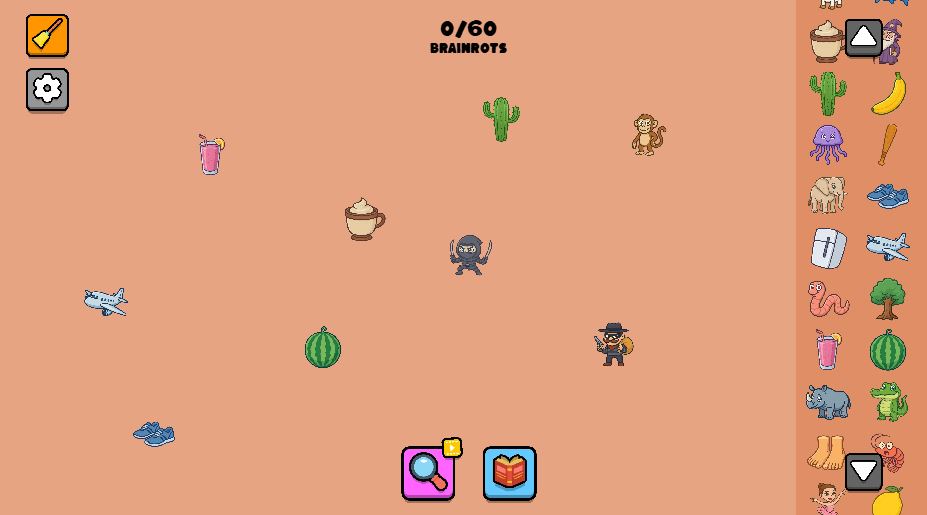 Click and drag items to move them around the board. Drop two items together to merge them. If they fuse, you get a new creation; if they don’t, they’ll bounce apart with a smug “try harder” energy. Keep merging to climb deeper into the Brainrot tree and discover the next meme-powered abomination.