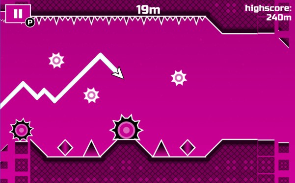 The objective in Space Waves is simple: navigate the tunnel and complete the level without encountering any obstacles. The arrow moves automatically, but the player must control its height to avoid obstacles.